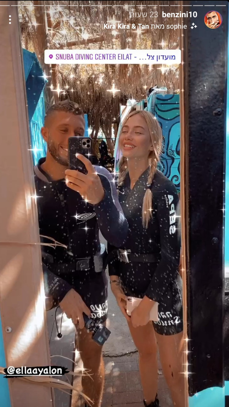 טיילור מלכוב בגד ים. השניים העלו לרשתות תמונות משותפות שלהם יחד ובן זיני גם לקח את זה צעד קדימה וכתב במשחק מילים אין על אלה-ת בעולם.